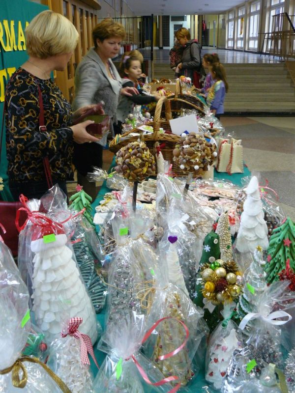Wszystkie prace wykonane były przez uczniów - z wielkim zaangażowaniem rodziców i nauczycieli. Kiermasz cieszył się dużym zainteresowaniem. Ozdoby świąteczne (szopki, bombki, choinki, kartki i inne drobiazgi) zostały w 90 % sprzedane. Zysk z kiermaszu zostanie przeznaczony na instrumenty muzyczne dla uczniów naszej szkoły.