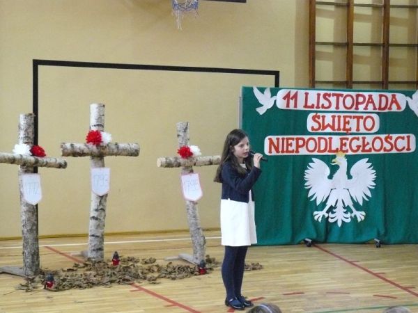 W naszej szkole święto to uczciliśmy uroczystą akademią, podczas której zostały zaprezentowane okolicznościowe utwory patriotyczne. Ponadto wśród uczniów klas IV- VI został przeprowadzony szkolny konkurs pieśni patriotycznych.