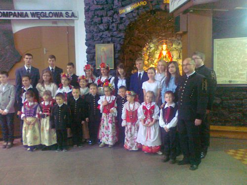 Po zjedzeniu smakołyków górnicy zaprosili wszystkich na spacer po kopalni; byliśmy m.in. w dyspozytorni i przed figurą św. Barbary, gdzie zrobiono sobie pamiątkowe zdjęcia. Spotkanie z górnikami i pobyt na kopalni były niezapomnianymi chwilami dla naszych uczniów, którzy mogli docenić trud pracy górniczej i tych, którzy dla nas „fedrują”. Szczęść Boże górnikom!